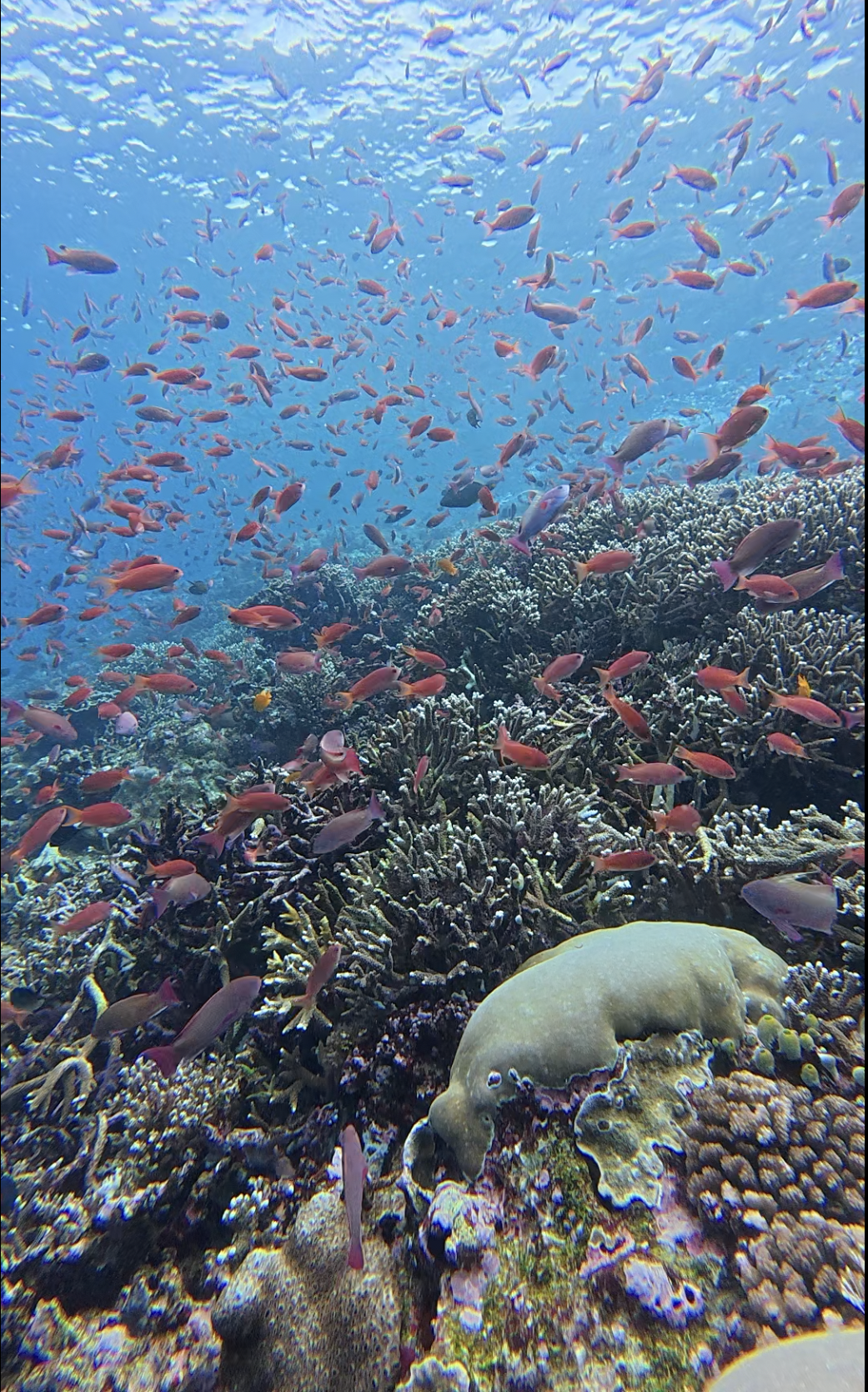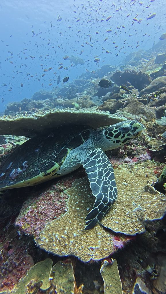 Durante la jornada de buceo realizamos tres inmersiones en diferentes puntos del archipiélago. Íbamos con las expectativas muy altas, pero lo que vivimos allí abajo fue difícil de asimilar. Jamás en mi vida había visto tanta vida junta: miles de peces de todos los colores imaginables, tiburones de punta blanca patrullando el arrecife, tortugas nadando con total calma y mantas rayas deslizándose sobre nosotros como si volaran en cámara lenta. Los corales eran un auténtico mosaico de formas y colores, y la corriente, aunque intensa en algunos puntos, añadía emoción y dinamismo a cada inmersión.