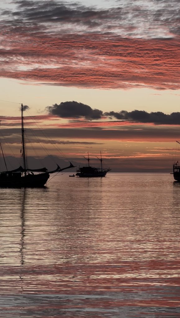 Tras disfrutar del hipnótico espectáculo de los murciélagos al atardecer, pusimos rumbo a la isla de Padar, posiblemente la más icónica de todo el Parque Nacional de Komodo. Allí fondeamos para pasar la noche, con el objetivo de subir a su mirador al amanecer y contemplar una de las vistas más espectaculares de todo el archipiélago.