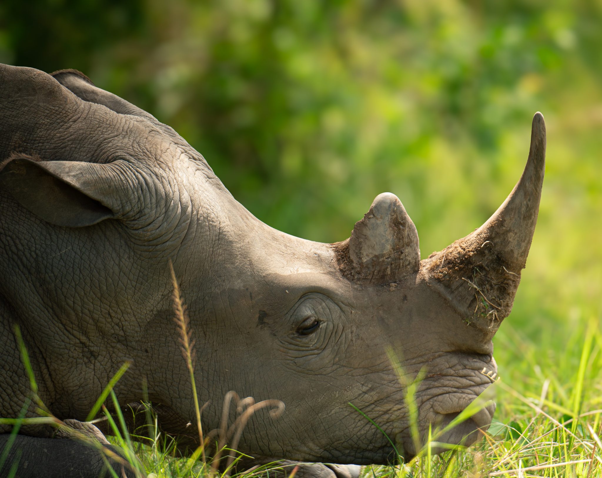 Un rinoceronte blanco descansando plácidamente en Ziwa.