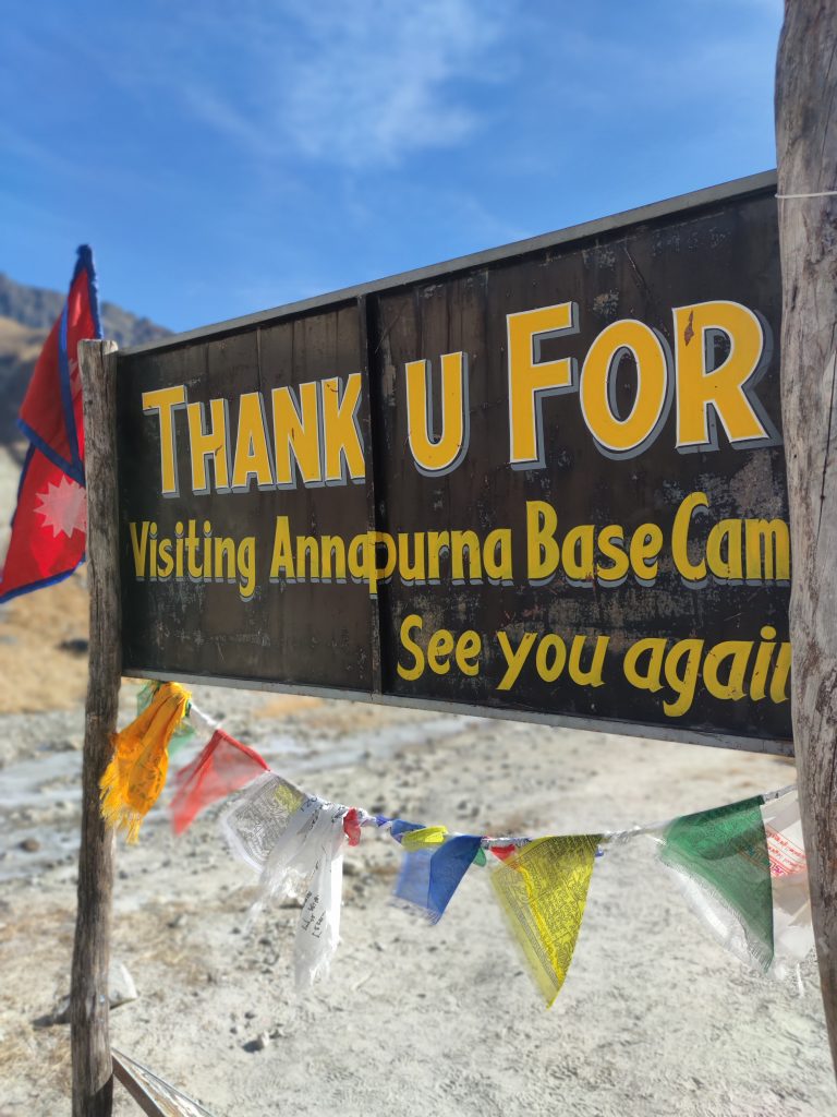 Finalmente conseguimos el objetivo de nuestro viaje, llegar al Campo Base del Annapurna 4130m. Es difícil explicar la sensación de estar rodeado de algunos de los gigantes montañosos más altos del mundo, te hacen sentir minúsculo, a nuestro frente estaba el Annapurna I 8091m (la décima montaña más alta del mundo), a nuestra izquierda el Annapurna South 7219m, detrás de nosotros el ya citado Machapunchare 6993m y a la derecha el Annapurna III 7575m.
