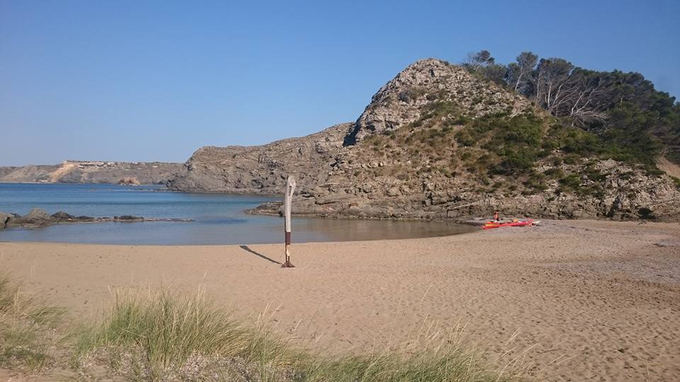 Nos lanzamos a una nueva etapa con algo de resaca y además las condiciones meteorológicas no están de nuestro lado. Nos cuesta avanzar más de la cuenta, cruzamos el puerto de Ciutadella (*PRECAUCIÓN) y decidimos parar en la playa de Son Xoriguer para descansar, comer y comprar suministros. Por la tarde, continuamos por el sur de la isla. El paisaje es muy diferente, hemos cambiado los acantilados escarpados del norte, por playas de arena blanca y pinares. Al final del día, llegamos a Cala Turqueta, lugar donde montamos un nuevo campamento y pasamos una noche mucho más tranquila que la del día anterior.