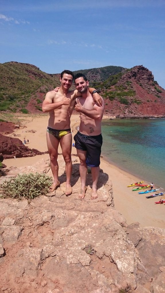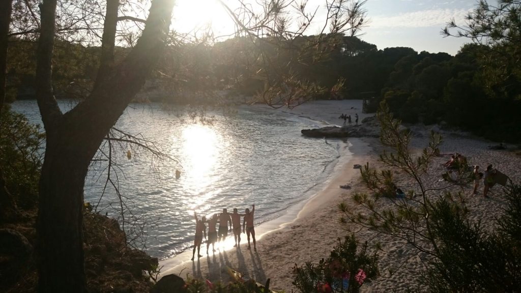 Un par de horas antes de la puesta de sol, desembarcamos en Cala en Porter, con la intención de ir a ver el atardecer a la Cova d’en Xoroi. Este establecimiento es una cueva natural habilitada como bar diurno y discoteca nocturna, desde donde se ve uno de los mejores atardeceres de Menorca, sin embargo, no nos dejaron entrar por las pintas de náufragos que llevábamos, perdiendo así una cuantiosa cuenta por las cervezas que íbamos a tomar.