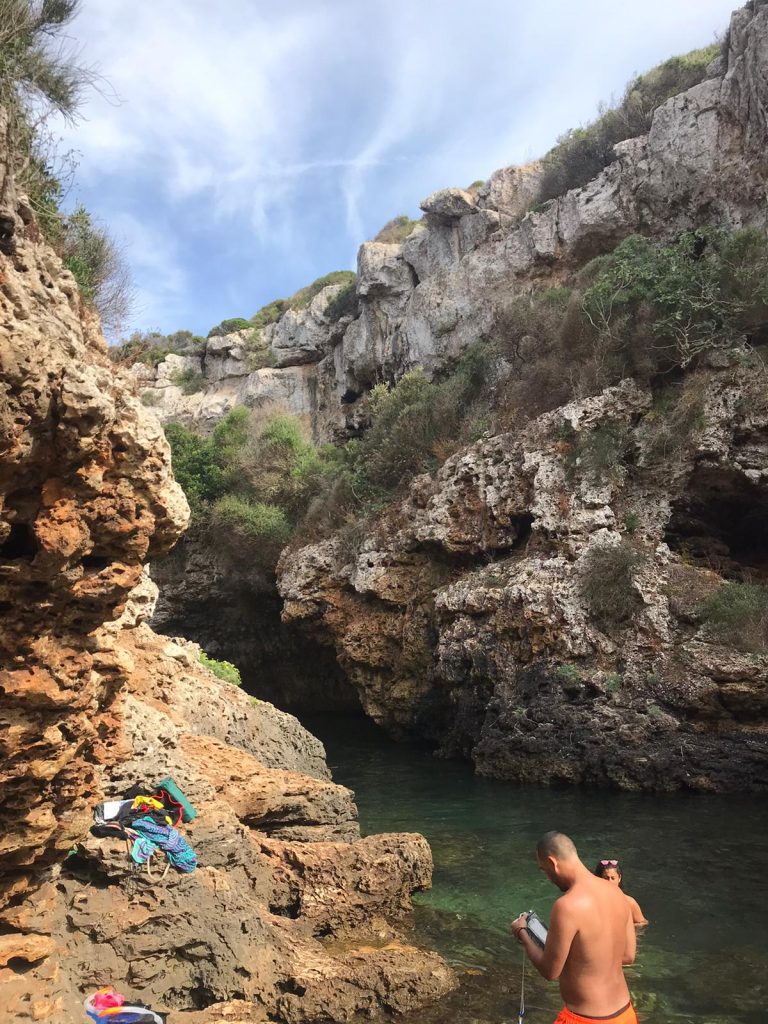 Tras hacer un breve descanso en Cala Mitjana y sus hipnóticas aguas, continuamos dirección Cala en Porter, dejando atrás el espectacular puente de piedra de Ali.